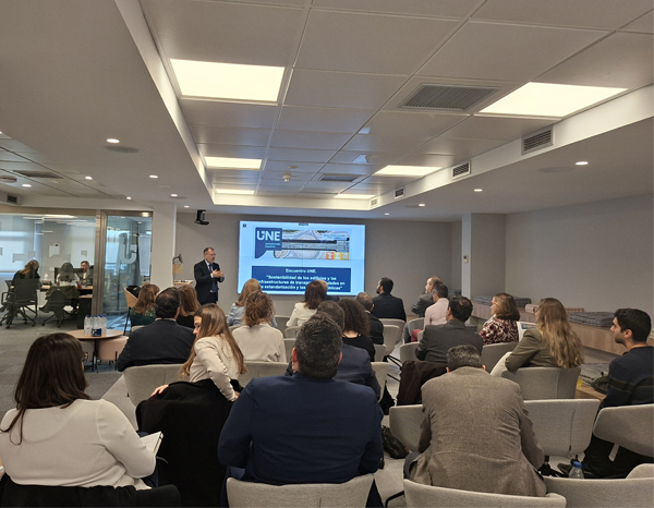 La Asociación Española de Normalización, UNE, celebró el 11 de noviembre en su sede, y también en formato online, con un total de 64 asistentes, el Encuentro UNE sobre la sostenibilidad de los edificios y las infraestructuras de transporte, donde los expertos analizaron las novedades en la estandarización y las políticas públicas en este ámbito.