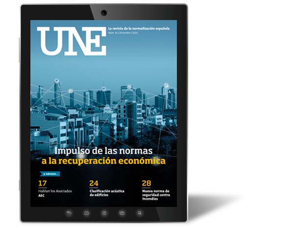 La edición digital incluye enlaces a las revistas de ISO e IEC y el suplemento Normas al día. Es accesible desde cualquier dispositivo y permite realizar búsquedas de contenidos de forma sencilla a la vez que permite compartirlos en redes sociales #RevistaUNE.